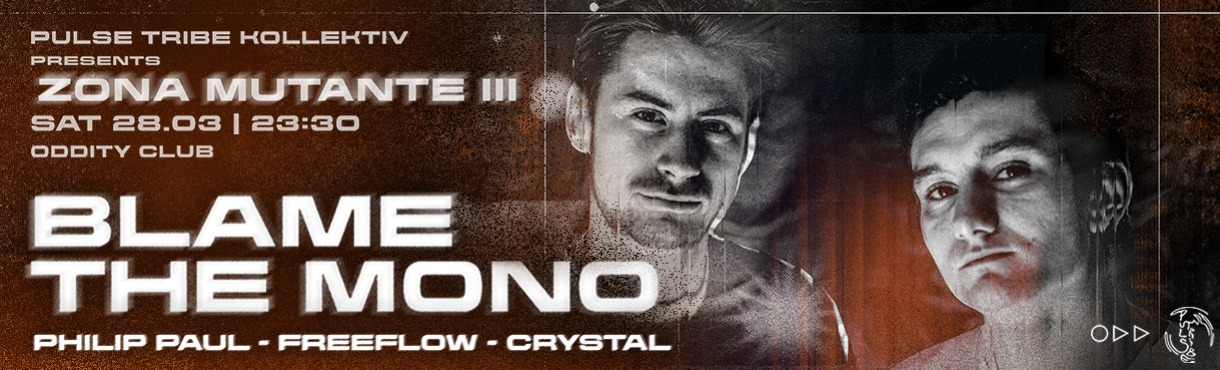 Saturday 28 March PULSE TRIBE KOLLEKTIV presents ZONA MUTANTE III with BLAME THE MONO at Oddity Club, Athens